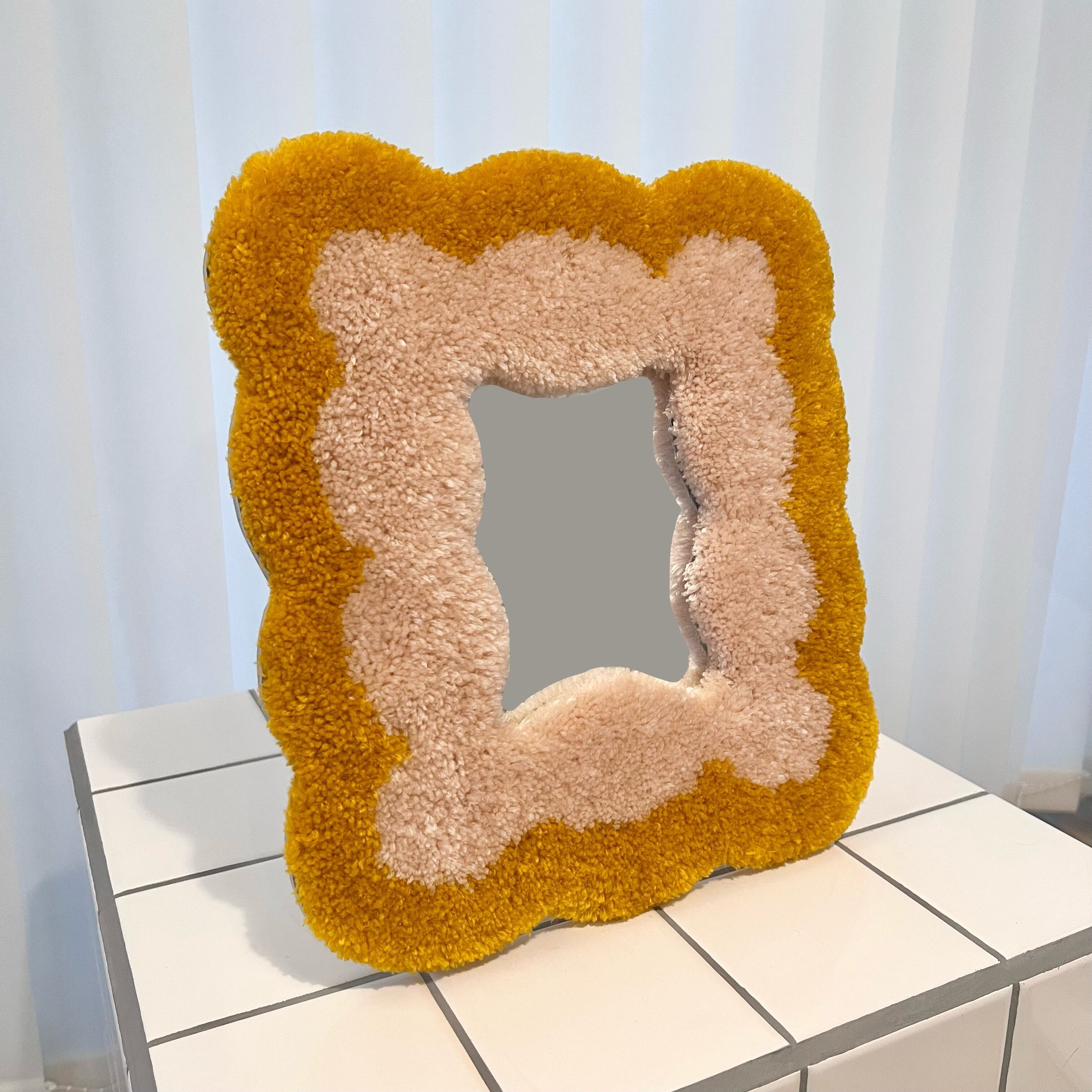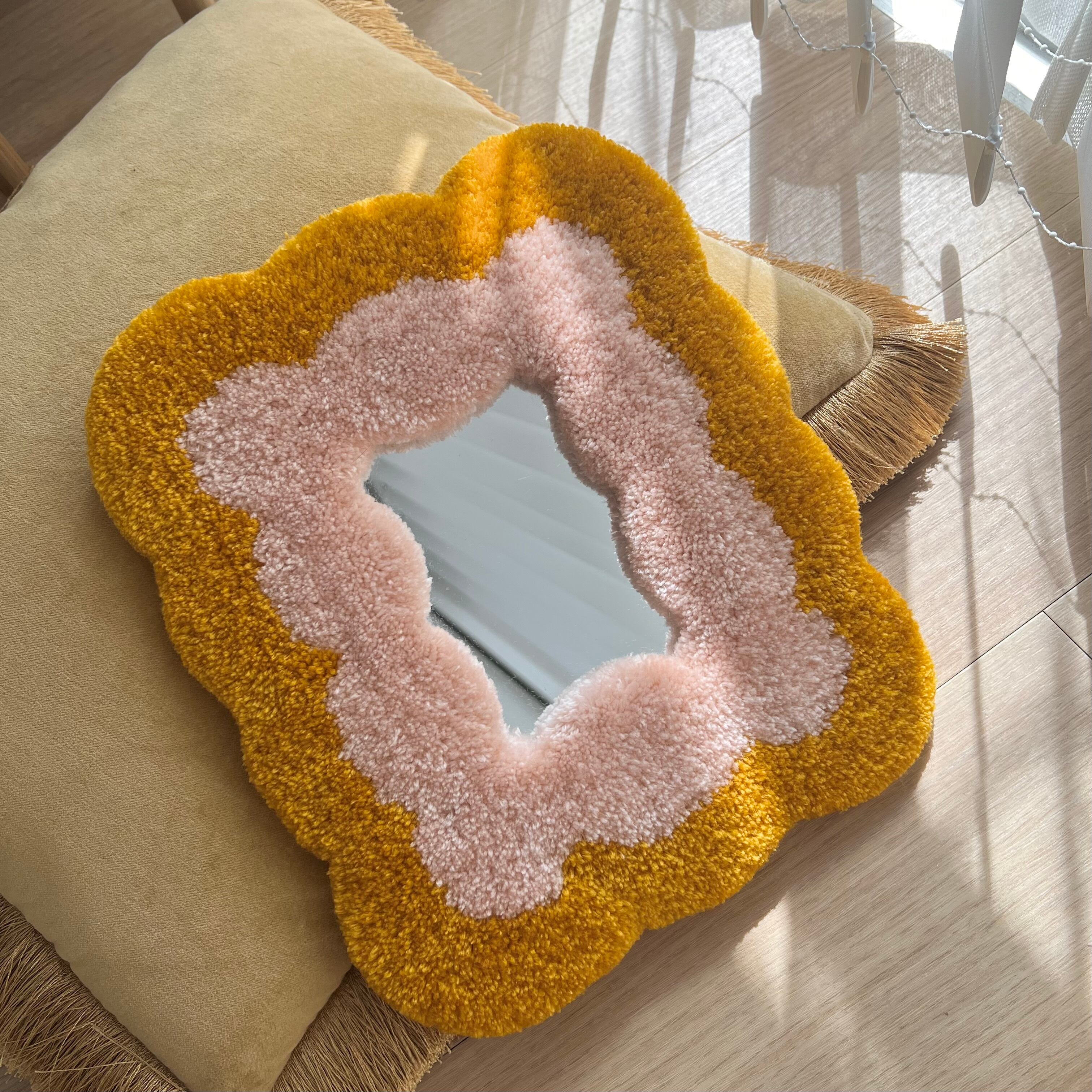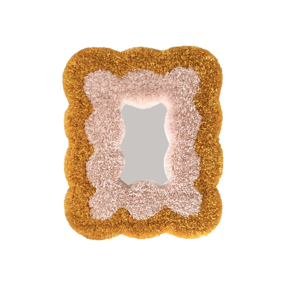 毛糸でできたフレームのミラーです。