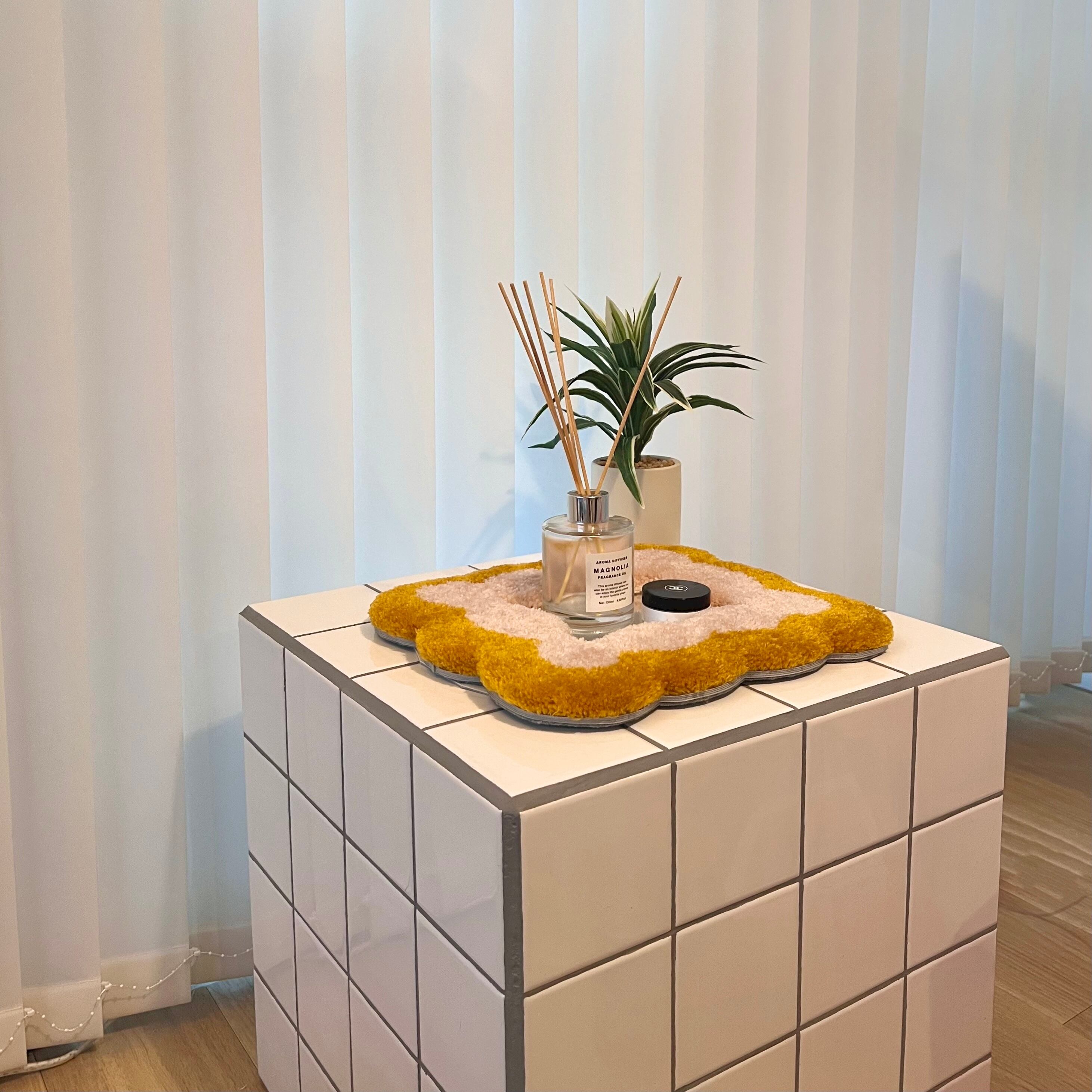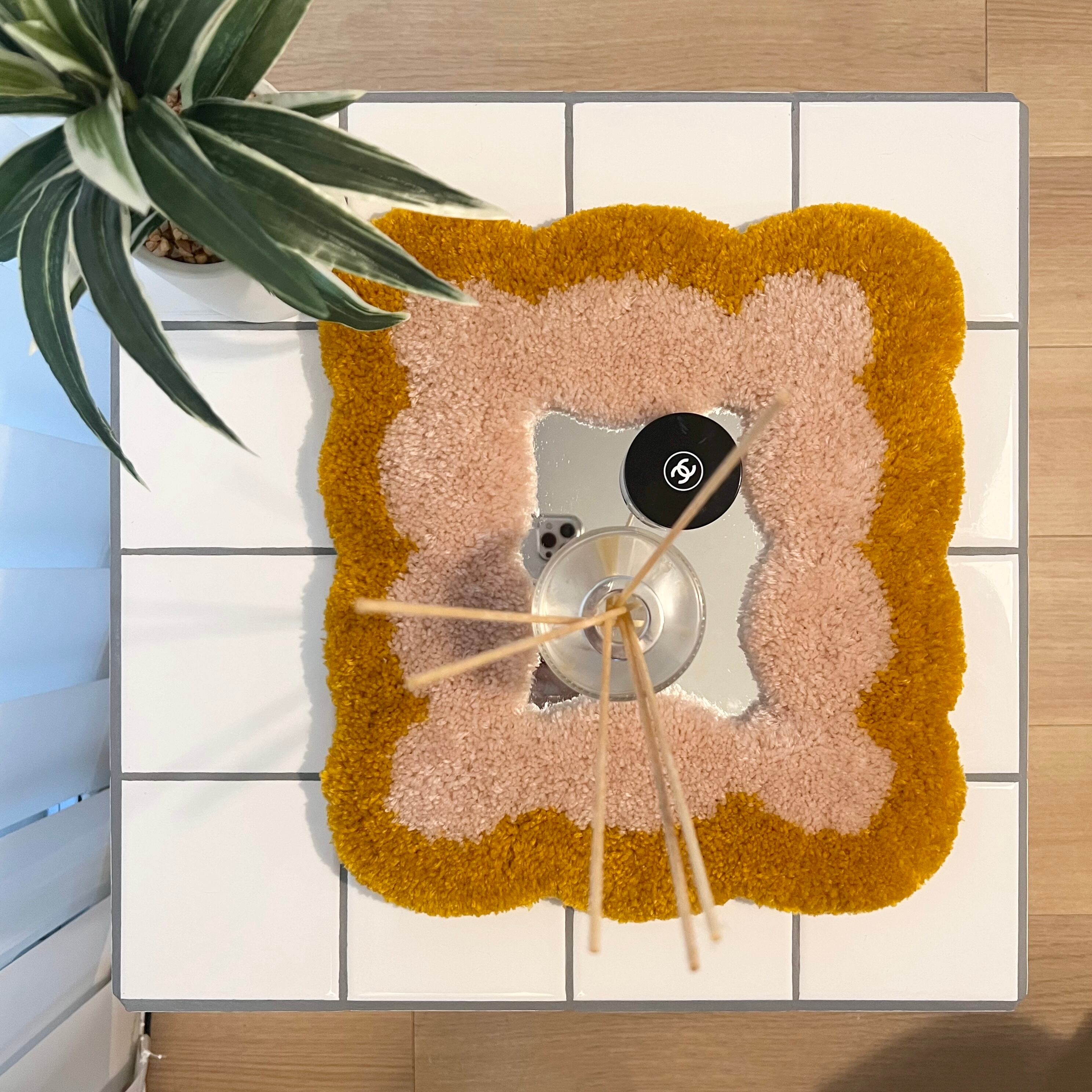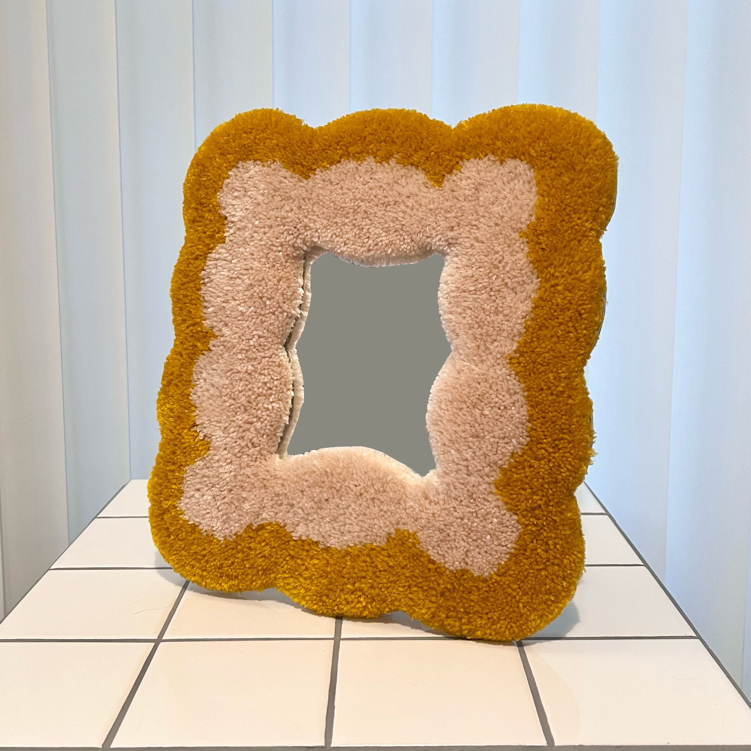 毛糸でできたフレームのミラーです。