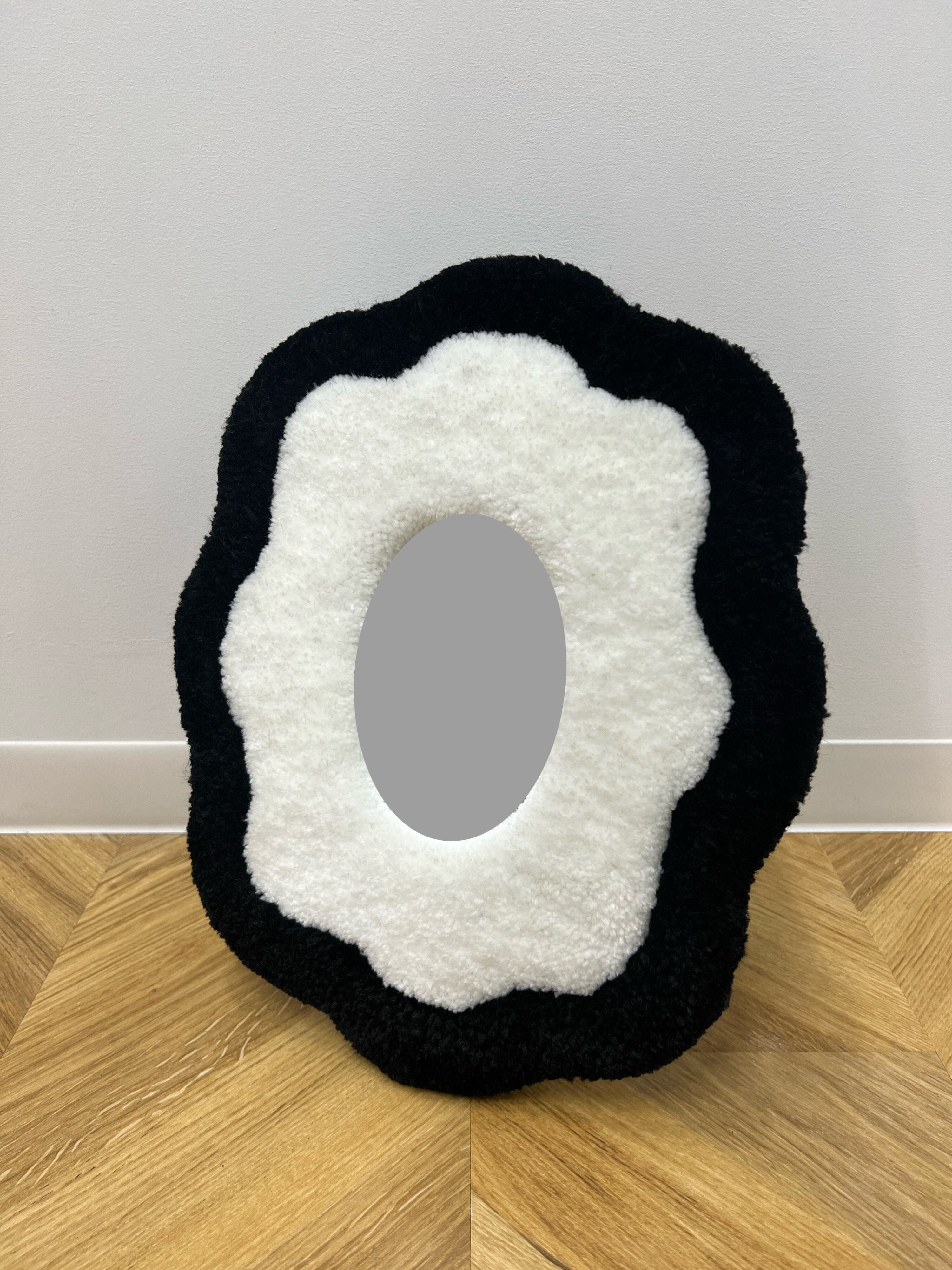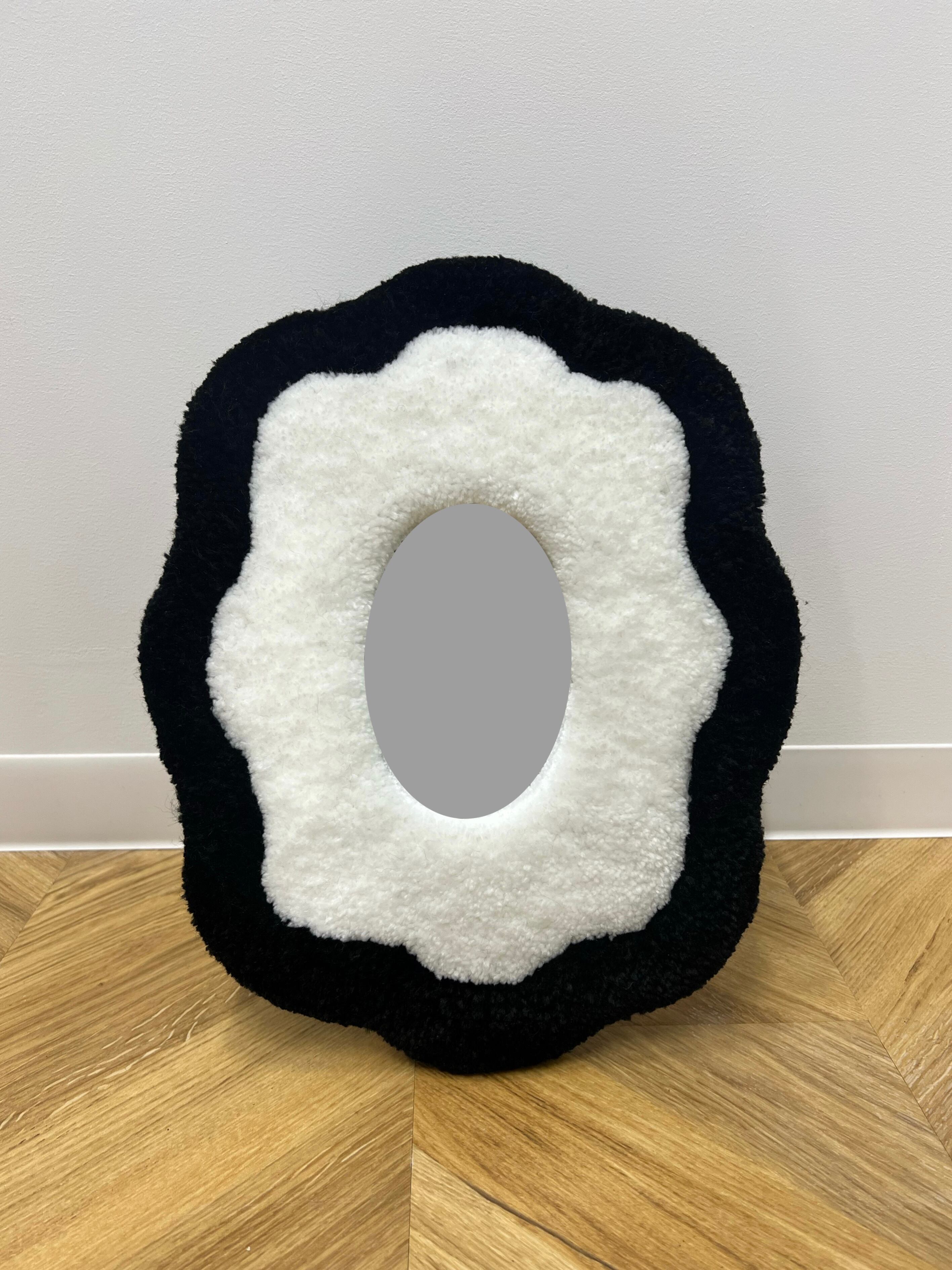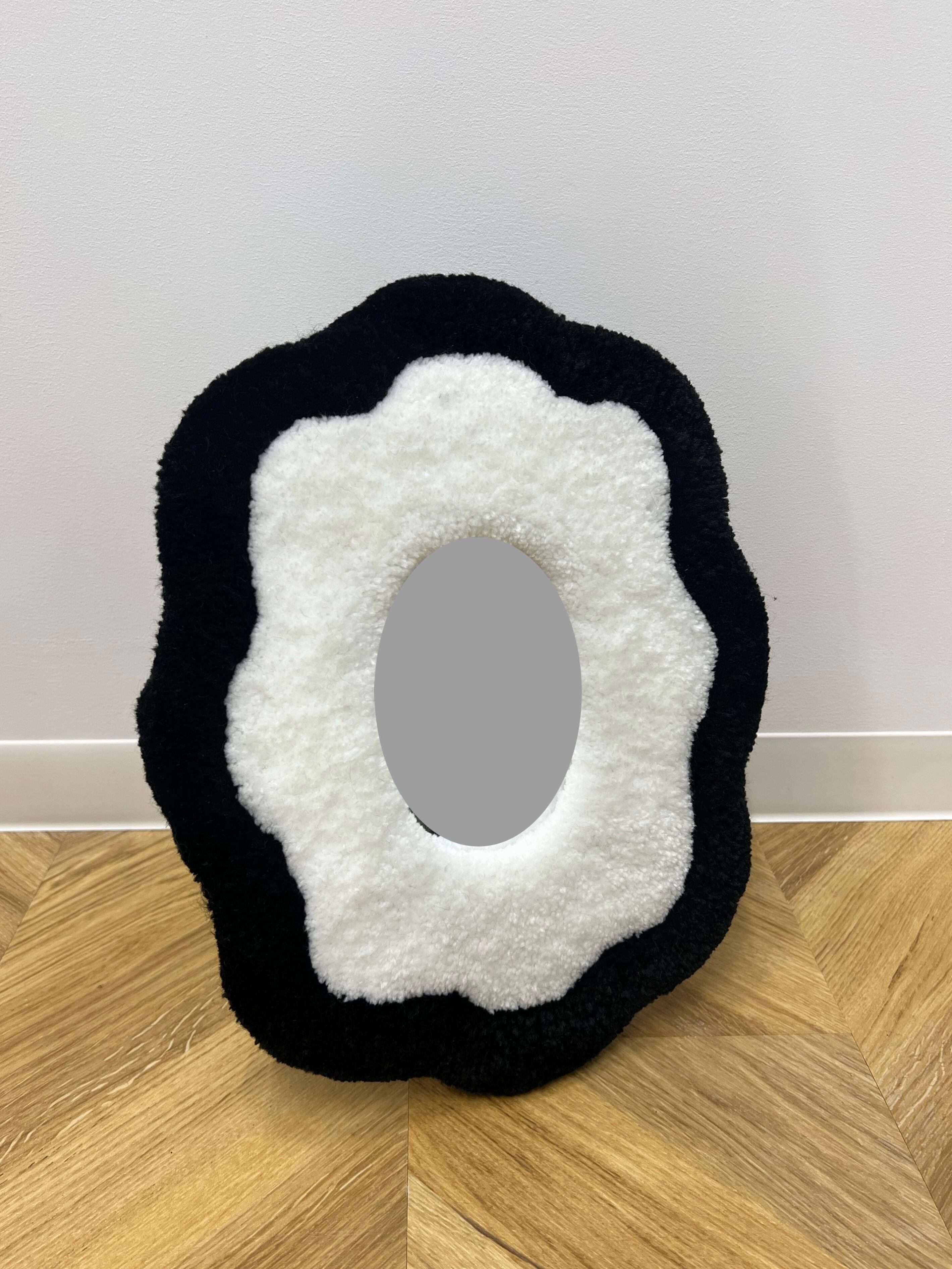 毛糸でできたフレームのミラーです。