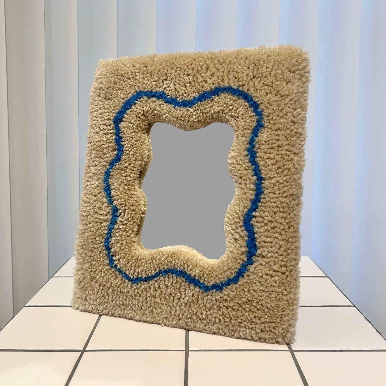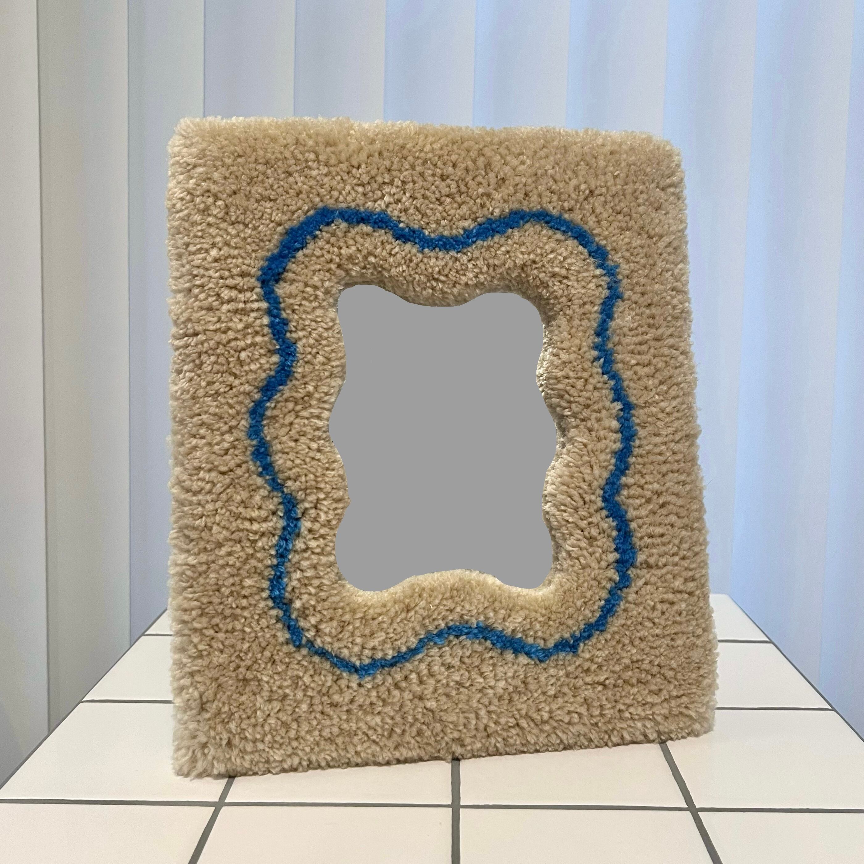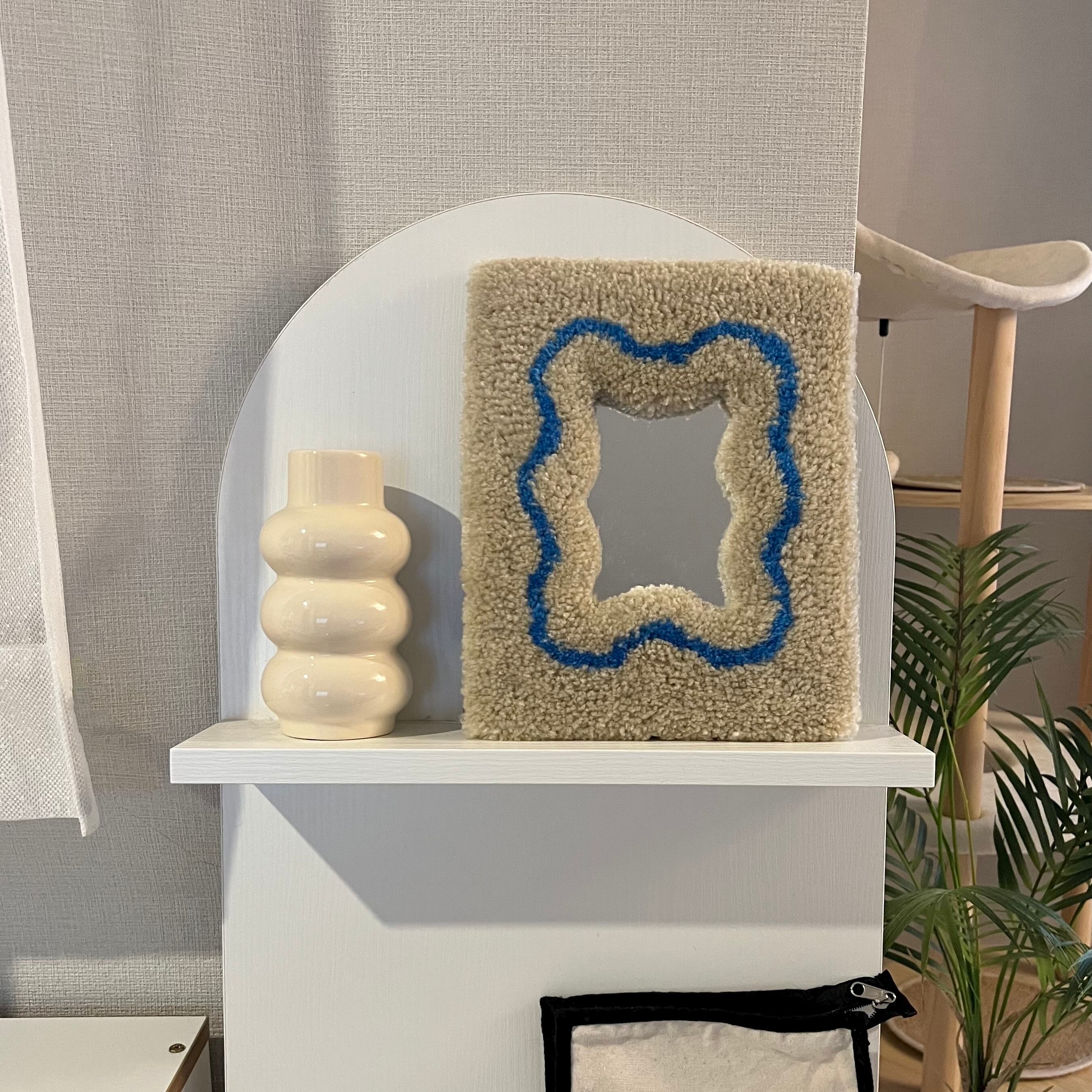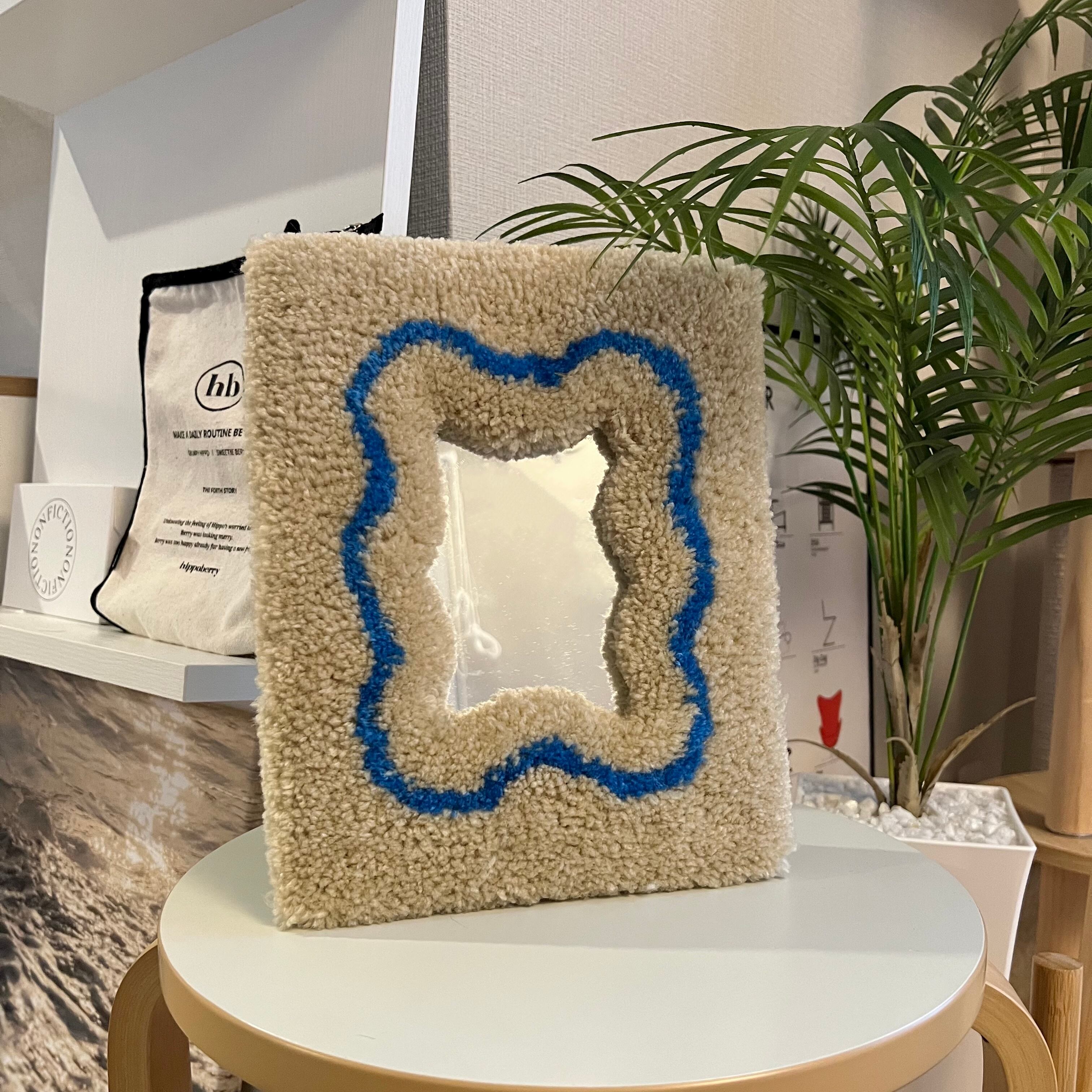 毛糸でできたフレームのミラーです。